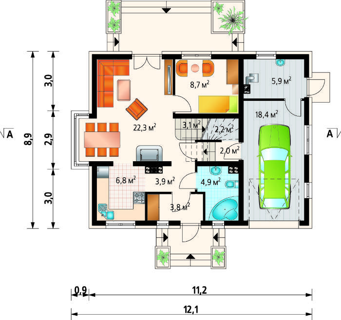 • 4M3764d Проект красивого дома с симпатичной верандой