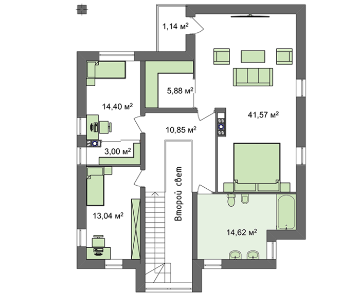 Проект содержит три раздела – Архитектурный, Конструктивный и Инженерный: водоснабжение, отопление, вентиляция, канализация, электроснабжение (приобретается за дополнительную плату) + Пояснительная записка.