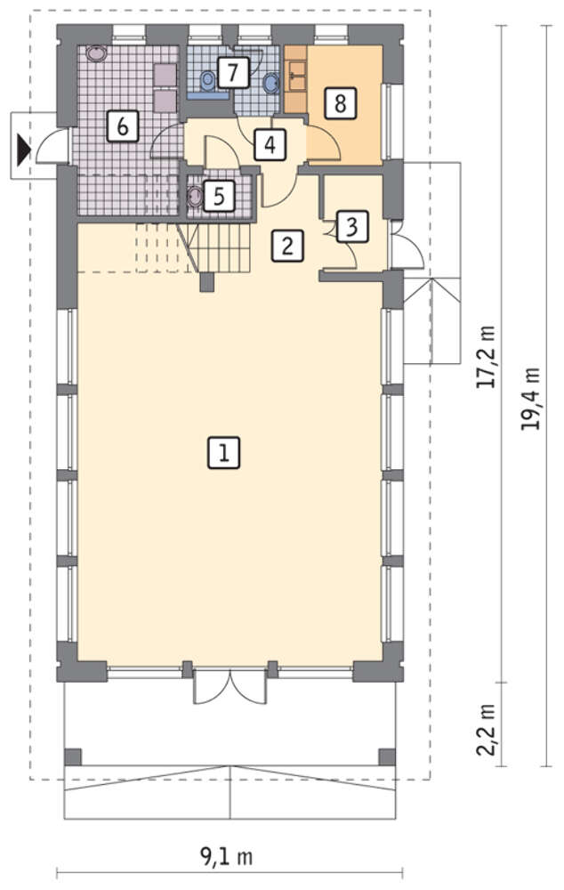 Проект содержит три раздела – АрхитектурныйКонструктивный и Инженерный: водоснабжение, отопление, вентиляция, канализация, электроснабжение (приобретается за дополнительную плату) + Пояснительная записка.