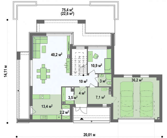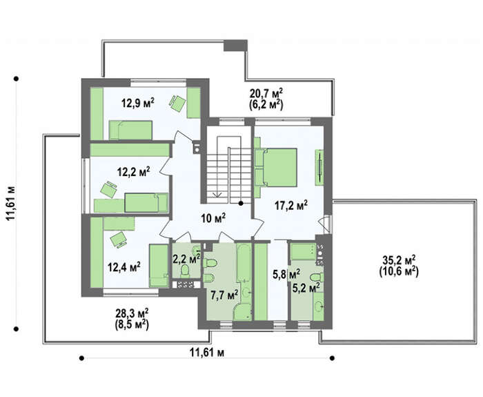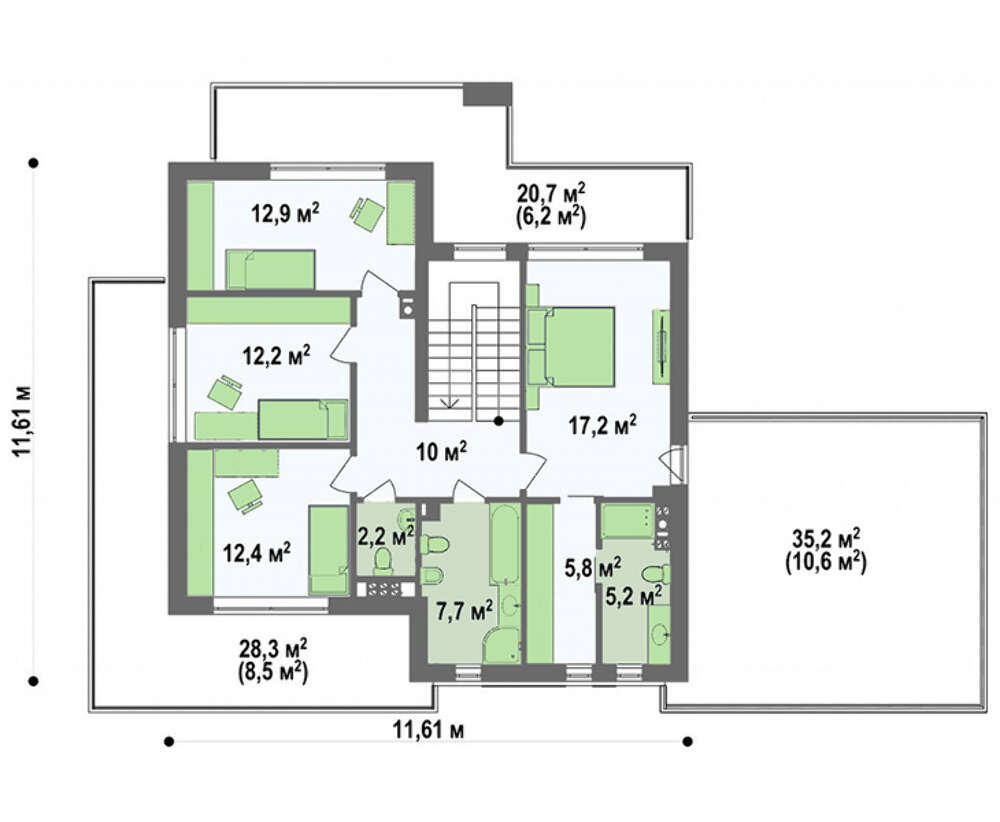Проект красивого загородного двухэтажного коттеджа общей площадью 216 кв.м. 4M7082