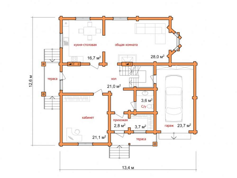 Все наши типовые проекты учитывают основные потребности среднестатистической семьи, правда, в таком случае говорить об индивидуальности вашего будущего жилища не приходится. Но, чтобы дом выглядел оригинально и полностью соответствовал вашим