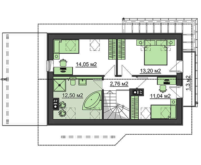 Проект содержит три раздела – Архитектурный, Конструктивный и Инженерный: водоснабжение, отопление, вентиляция, канализация, электроснабжение (приобретается за дополнительную плату) + Пояснительная записка.