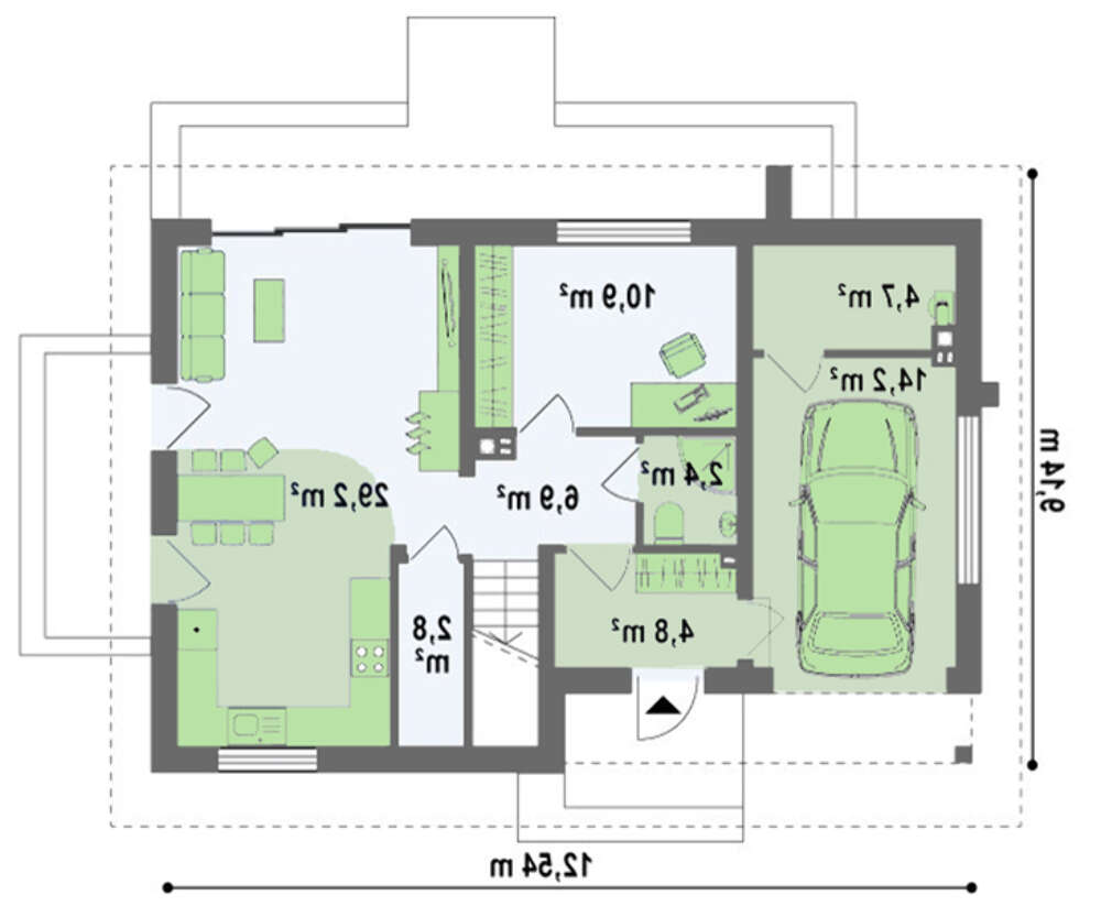 • 4M306 Проект маленького дома с мансардой и гаражом