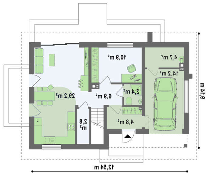 Проект маленького дома с мансардой и гаражом