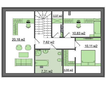 • 4M508 Проект мансардного дома с четырьмя спальнями