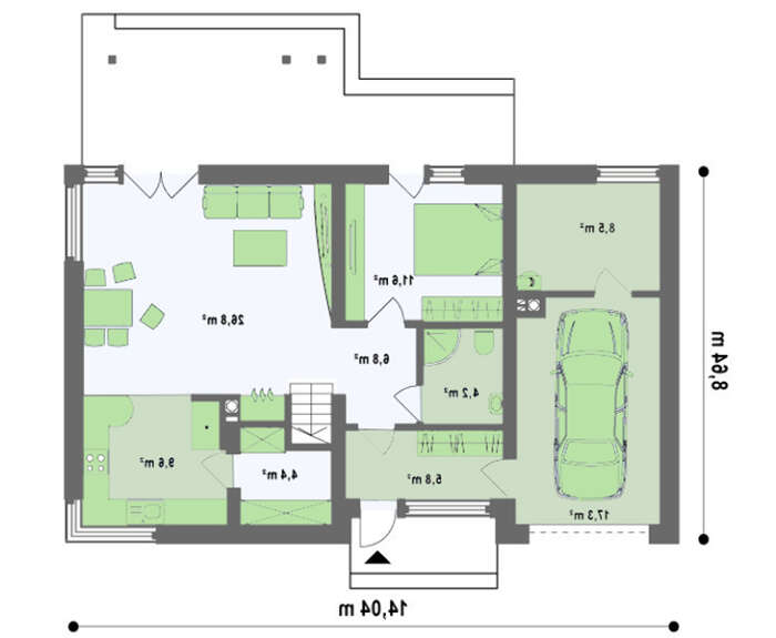 Проект содержит три раздела – Архитектурный, Конструктивный и Инженерный: водоснабжение, отопление, вентиляция, канализация, электроснабжение (приобретается за дополнительную плату) + Пояснительная записка.