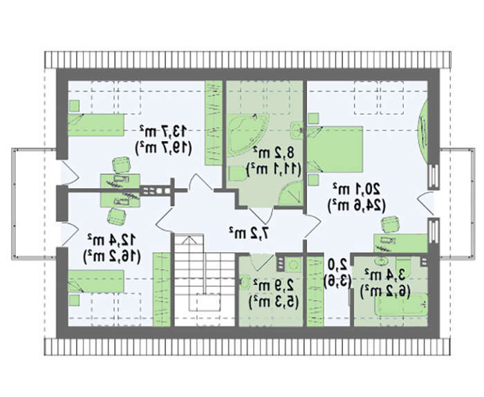 Проект содержит три раздела – Архитектурный, Конструктивный и Инженерный: водоснабжение, отопление, вентиляция, канализация, электроснабжение (приобретается за дополнительную плату) + Пояснительная записка.