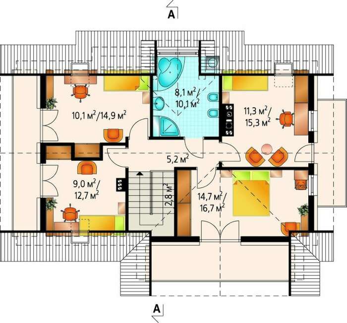 Проект мансардного коттеджа с широкими балконами 4M3483a