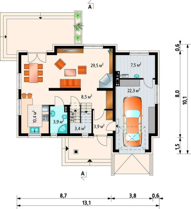 Проект содержит три раздела – АрхитектурныйКонструктивный и Инженерный: водоснабжение, отопление, вентиляция, канализация, электроснабжение (приобретается за дополнительную плату) + Пояснительная записка.