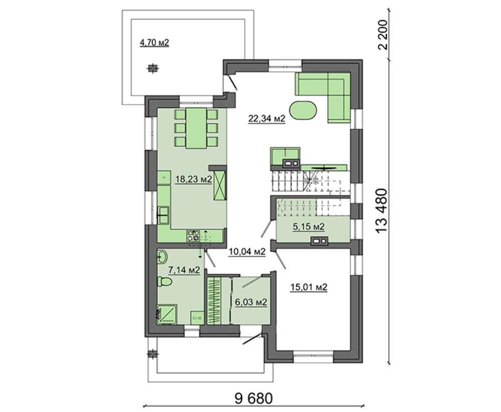 Проект содержит три раздела – Архитектурный, Конструктивный и Инженерный: водоснабжение, отопление, вентиляция, канализация, электроснабжение (приобретается за дополнительную плату) + Пояснительная записка.