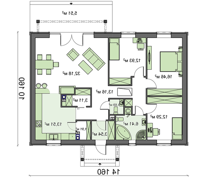 • 4M524 Проект небольшого одноэтажного дома с просторными помещениями
