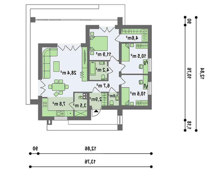 Такое счастье дарит своим жильцам небольшой одноэтажный коттедж с плоской кровлей. Его три спальни дают возможность отдохнуть и расслабиться. Двух санузлов вполне достаточно для ощущения комфорта. Большие пространства для совместного отдыха позволяют каждый день чувствовать себя на празднике.
