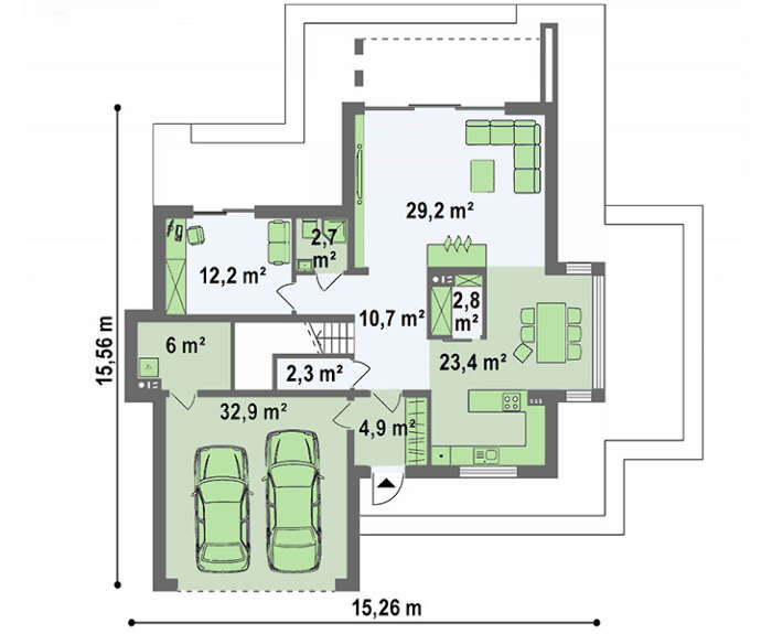 Проект содержит три раздела – Архитектурный, Конструктивный и Инженерный: водоснабжение, отопление, вентиляция, канализация, электроснабжение (приобретается за дополнительную плату) + Пояснительная записка.