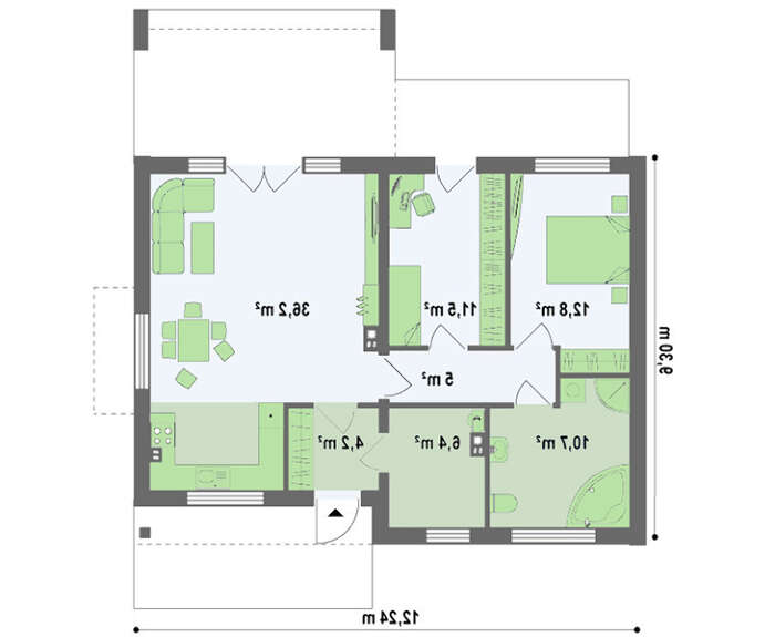 Проект содержит три раздела – Архитектурный, Конструктивный и Инженерный: водоснабжение, отопление, вентиляция, канализация, электроснабжение (приобретается за дополнительную плату) + Пояснительная записка.