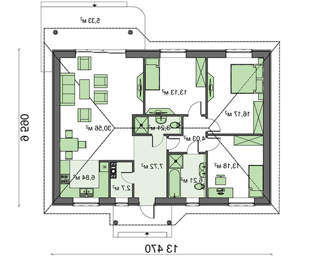 • 4M474 Проект одноэтажного дома в европейском стиле