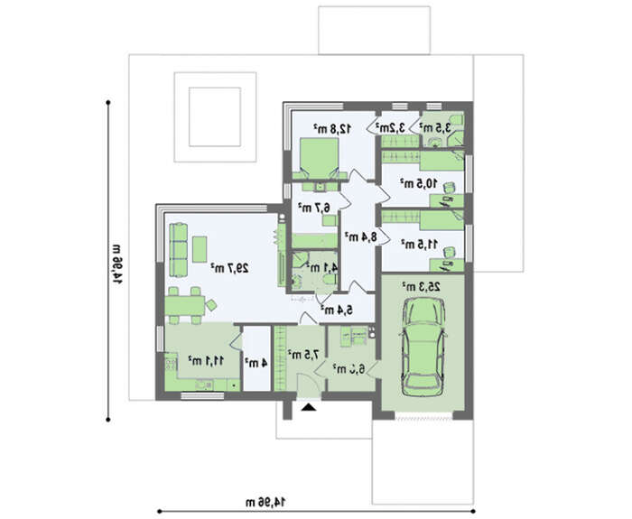 Проект содержит три раздела – Архитектурный, Конструктивный и Инженерный: водоснабжение, отопление, вентиляция, канализация, электроснабжение (приобретается за дополнительную плату) + Пояснительная записка.