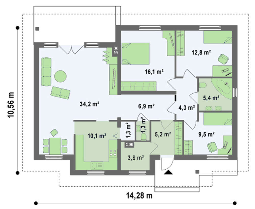 Особо стоит отметить, что проект дома, за счет своей компактности и рациональности планировок отличается повышенной экономичностью при строительстве и эксплуатации. Причем, это никак не сказывается на его комфортности.