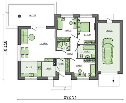 Проект содержит три раздела – АрхитектурныйКонструктивный и Инженерный: водоснабжение, отопление, вентиляция, канализация, электроснабжение (приобретается за дополнительную плату) + Пояснительная записка.