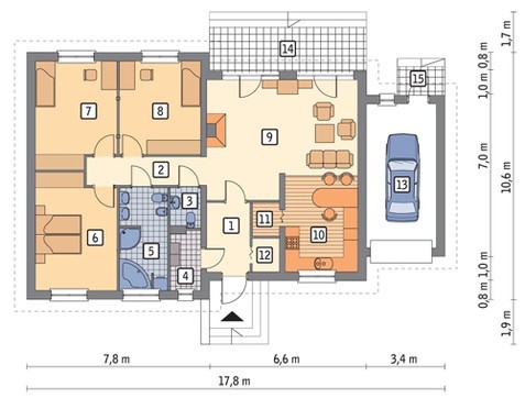 Проект содержит три раздела – Архитектурный, Конструктивный и Инженерный: водоснабжение, отопление, вентиляция, канализация, электроснабжение (приобретается за дополнительную плату) + Пояснительная записка.