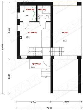 Проект содержит три раздела – Архитектурный, Конструктивный и Инженерный: водоснабжение, отопление, вентиляция, канализация, электроснабжение (приобретается за дополнительную плату) + Пояснительная записка.