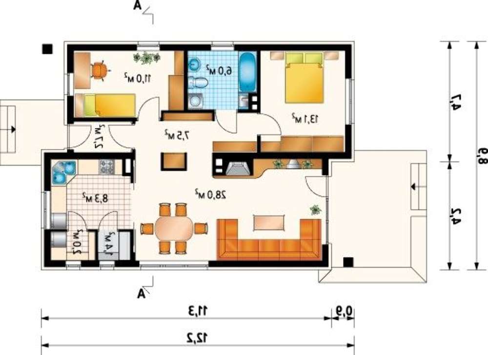 Общая площадь:80.00 м2