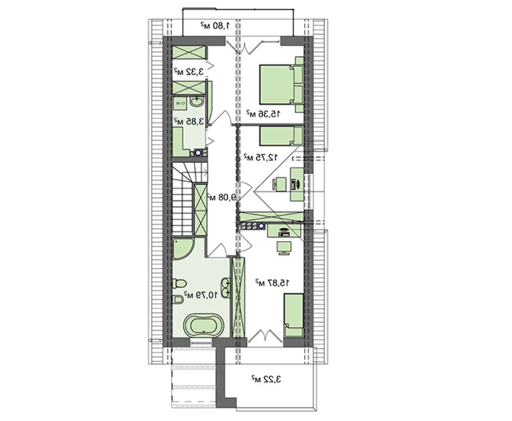 Проект содержит три раздела – Архитектурный, Конструктивный и Инженерный: водоснабжение, отопление, вентиляция, канализация, электроснабжение (приобретается за дополнительную плату) + Пояснительная записка.