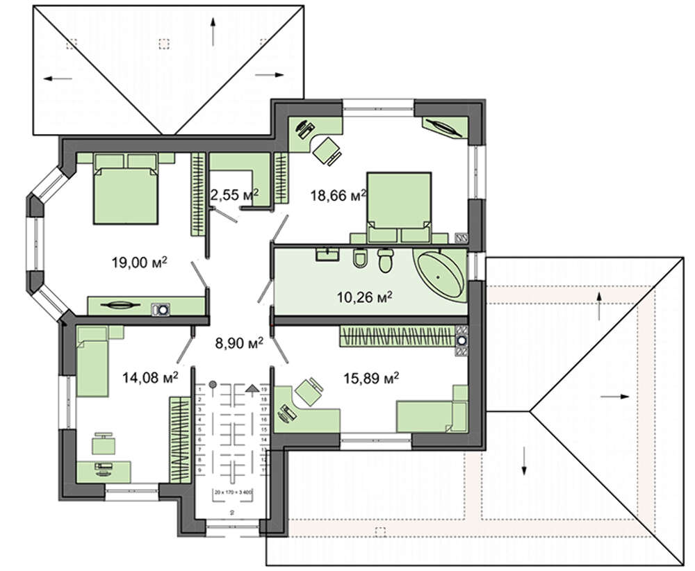 Угол наклона кровли:25 / 28 °