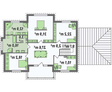 Второй этаж занимают три опочивальни и просторная ванная. Опочивальни весьма просторны, в них без труда могут разместиться шесть домочадцев.