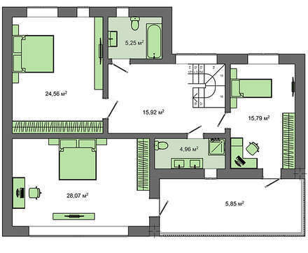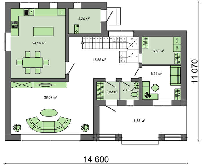 Проект содержит три раздела – Архитектурный, Конструктивный и Инженерный: водоснабжение, отопление, вентиляция, канализация, электроснабжение (приобретается за дополнительную плату) + Пояснительная записка.
