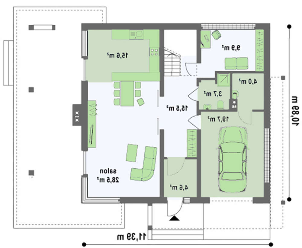 Особого внимания заслуживает встроенный гараж с удобным подсобным помещением, которое можно приспособить под мастерскую. Кстати, из гаража можно свободно пройти в любую часть дома.