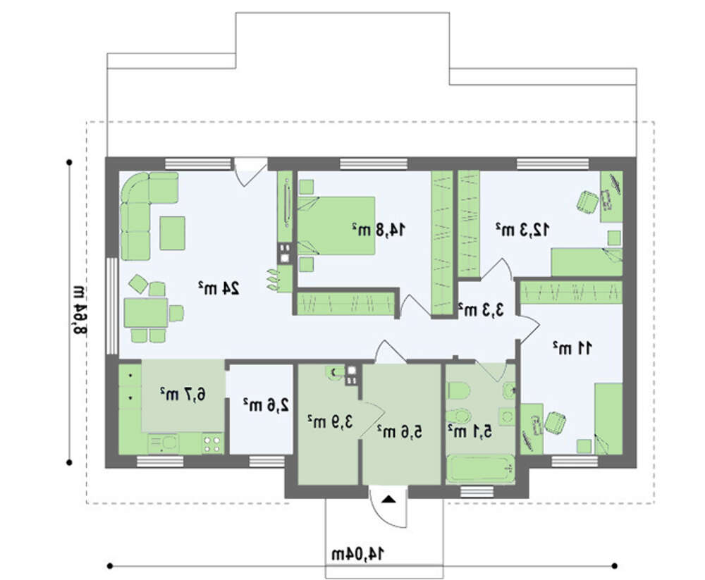 Проект содержит три раздела – АрхитектурныйКонструктивный и Инженерный: водоснабжение, отопление, вентиляция, канализация, электроснабжение (приобретается за дополнительную плату) + Пояснительная записка.