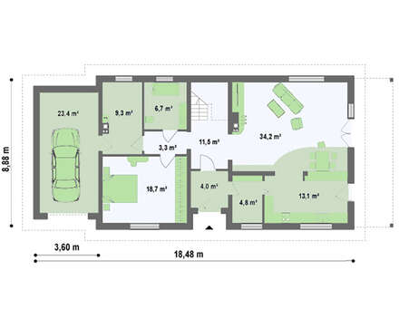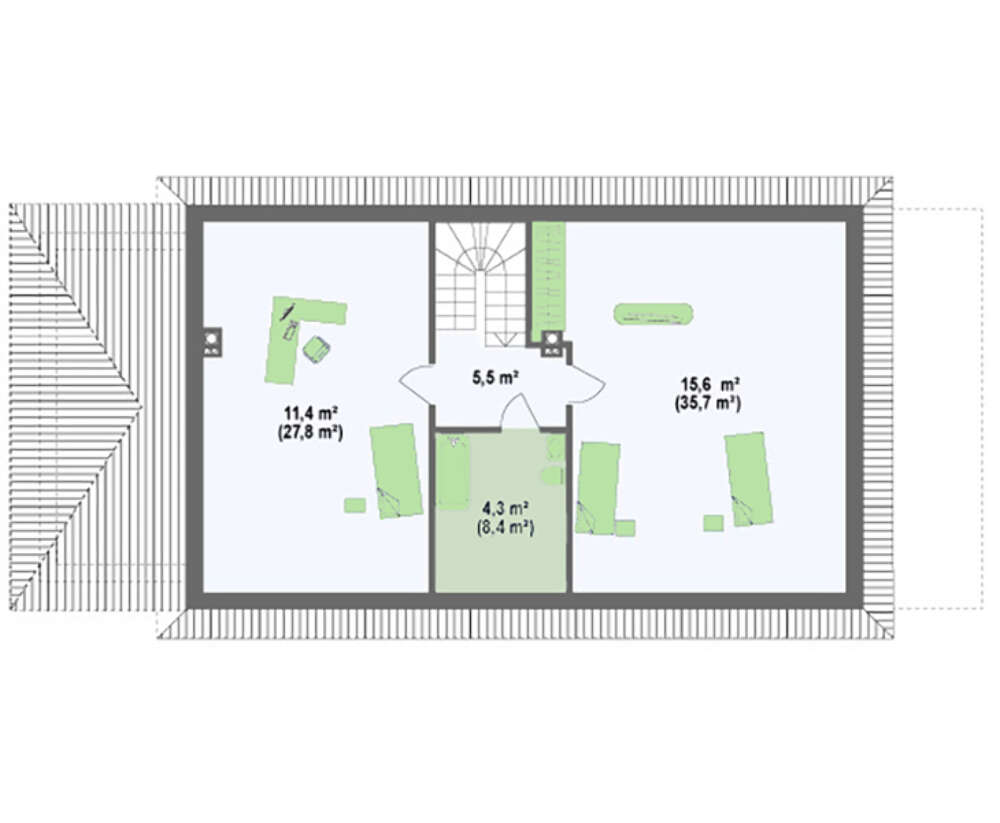 Проект содержит три раздела – Архитектурный, Конструктивный и Инженерный: водоснабжение, отопление, вентиляция, канализация, электроснабжение (приобретается за дополнительную плату) + Пояснительная записка.