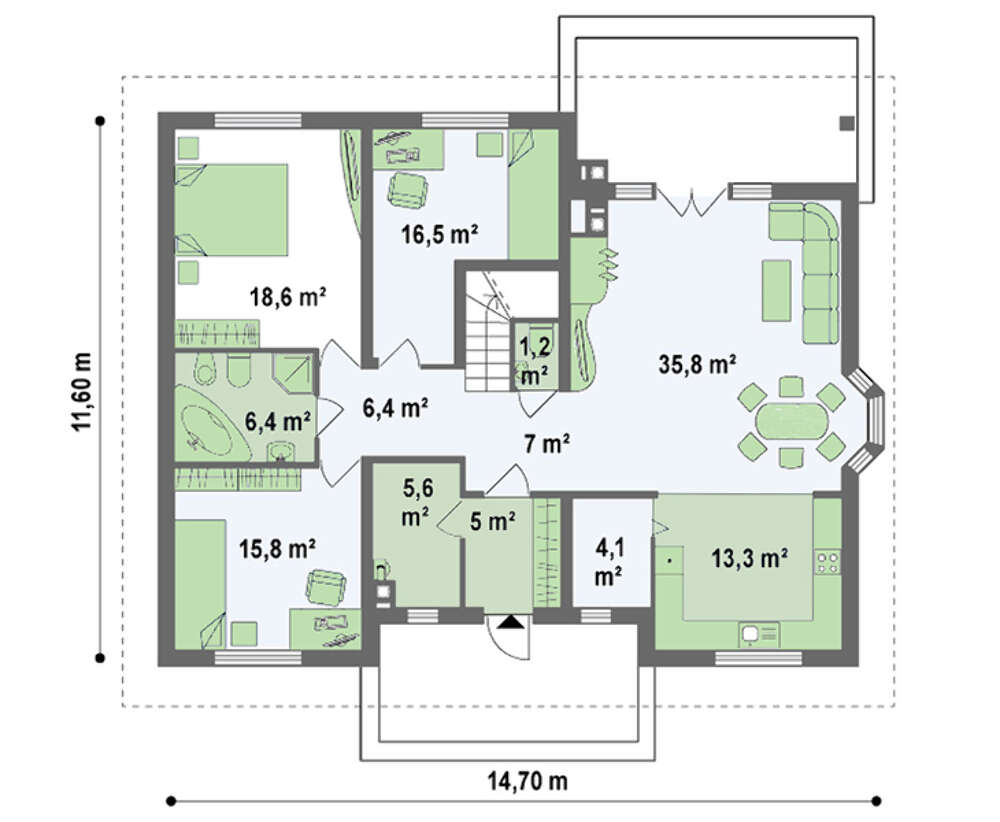 • 4M011a Проект просторного загородного дома с тремя спальнями
