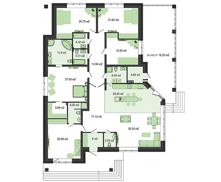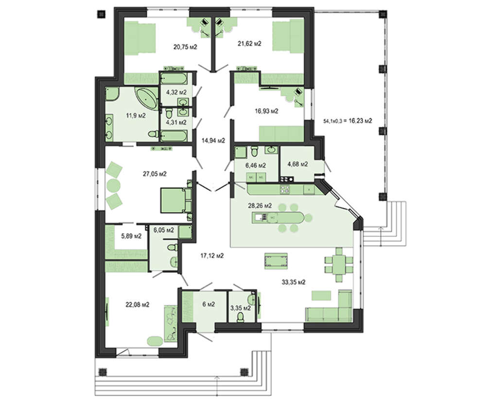 • 4M555 Проект роскошного особняка в английском стиле общей площадью 271 кв. м, жилой 141 кв. м