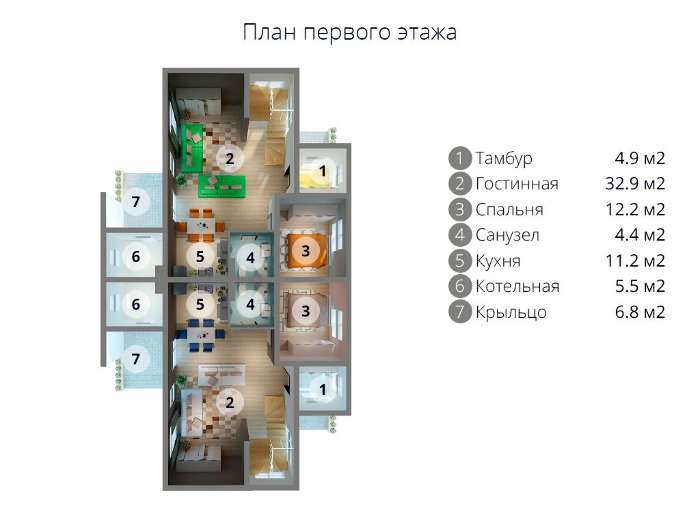 • 4M5117 Проект роскошного таунхауса с просторной гостиной