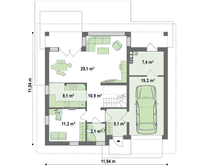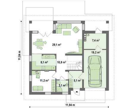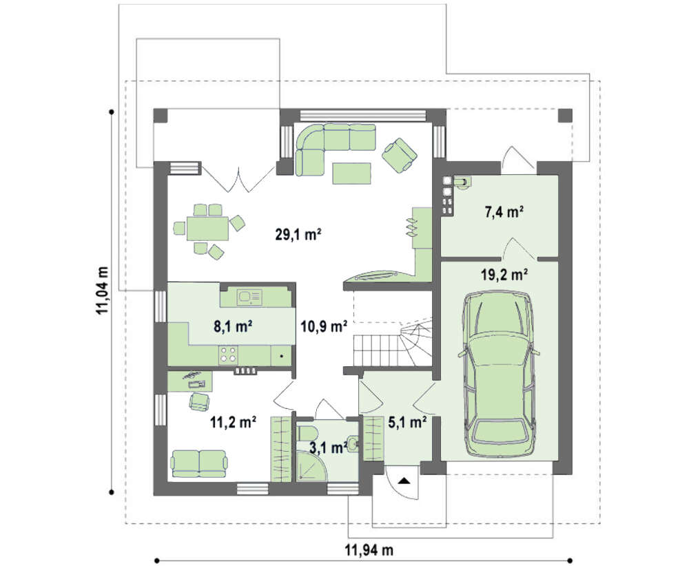Проект особняка со встроенным гаражом и остекленной гостиной