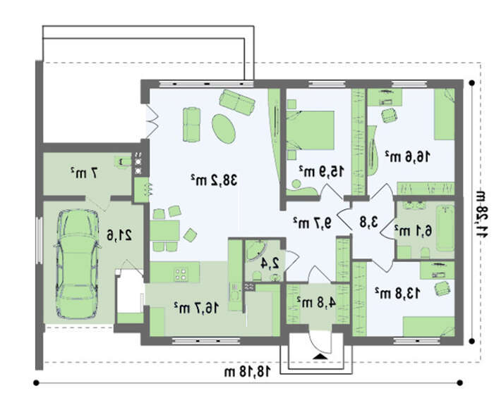 Проект содержит три раздела – Архитектурный, Конструктивный и Инженерный: водоснабжение, отопление, вентиляция, канализация, электроснабжение (приобретается за дополнительную плату) + Пояснительная записка.