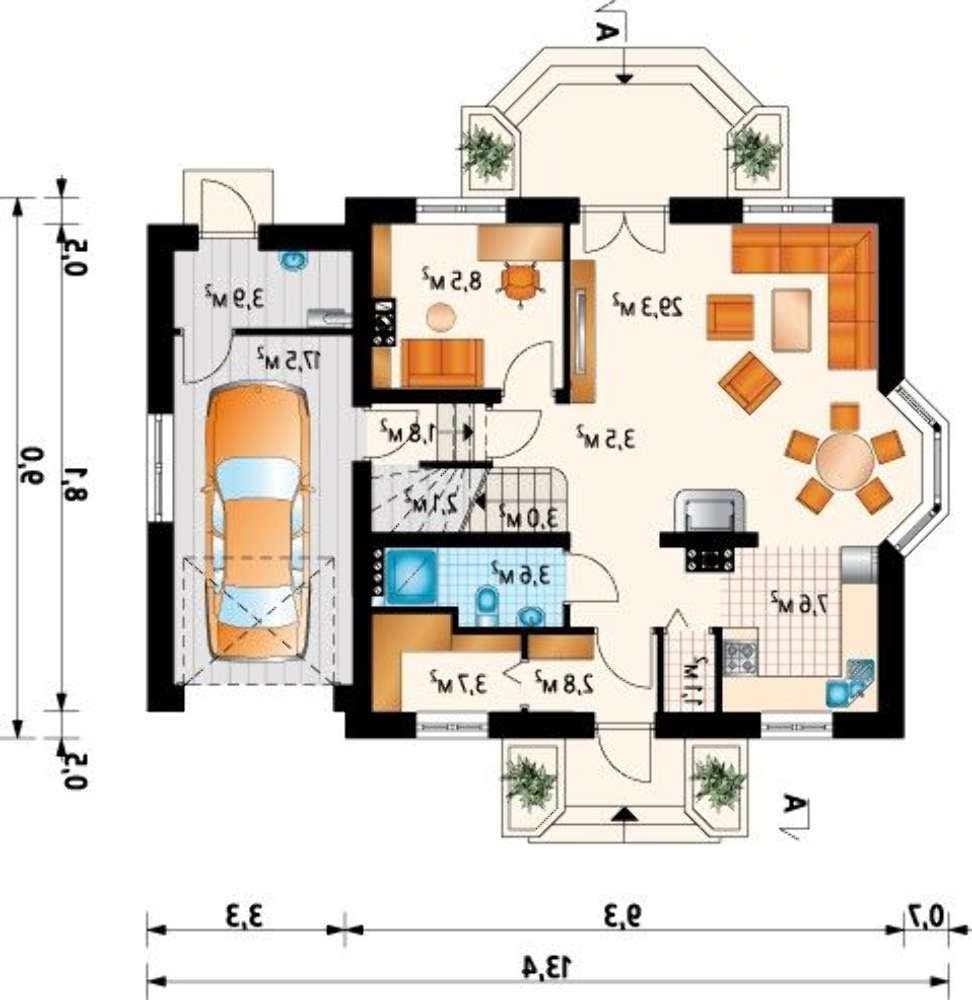 Проект симпатичного дома с гаражом на одно авто и эркером 4M3425c
