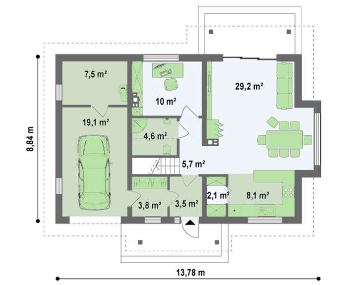 Если вас интересует жилье для семьи, состоящей из 5-6 человек, обратите внимание на проект дома с гаражом. По большому счету, это доработанная версия проекта 4M118.