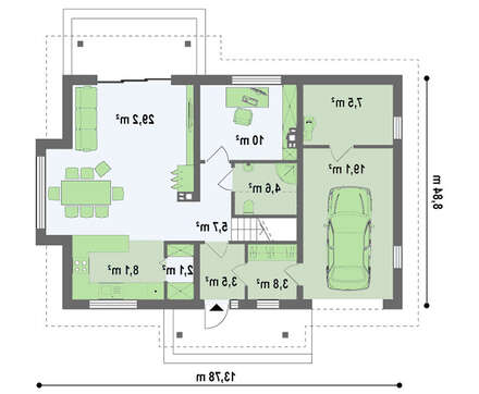 Если вас интересует жилье для семьи, состоящей из 5-6 человек, обратите внимание на проект дома с гаражом. По большому счету, это доработанная версия проекта 4M118.