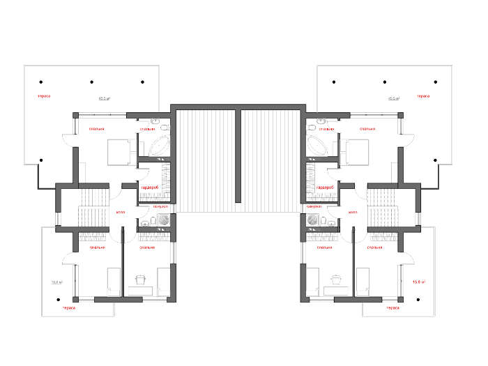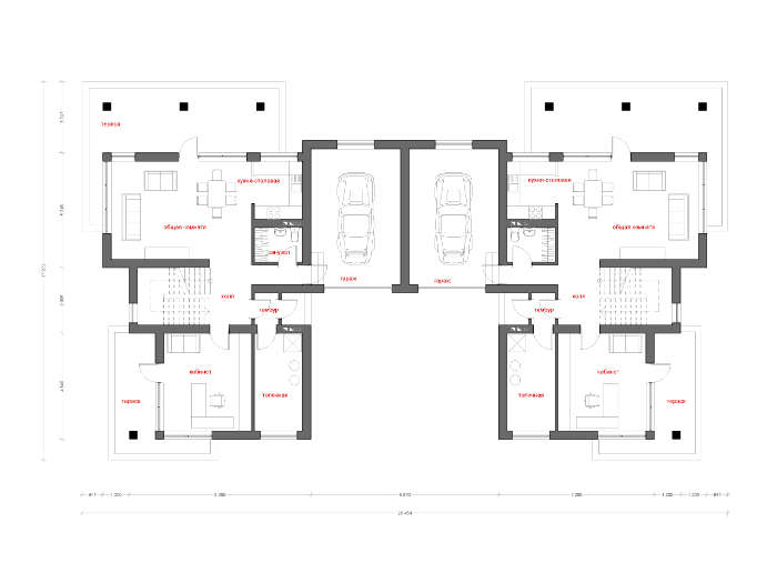 Проект содержит три раздела – Архитектурный, Конструктивный и Инженерный: водоснабжение, отопление, вентиляция, канализация, электроснабжение (приобретается за дополнительную плату) + Пояснительная записка.