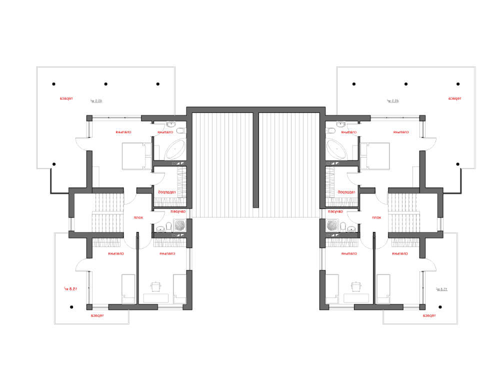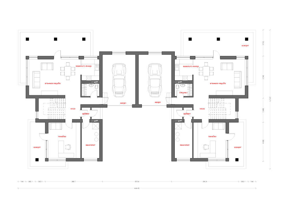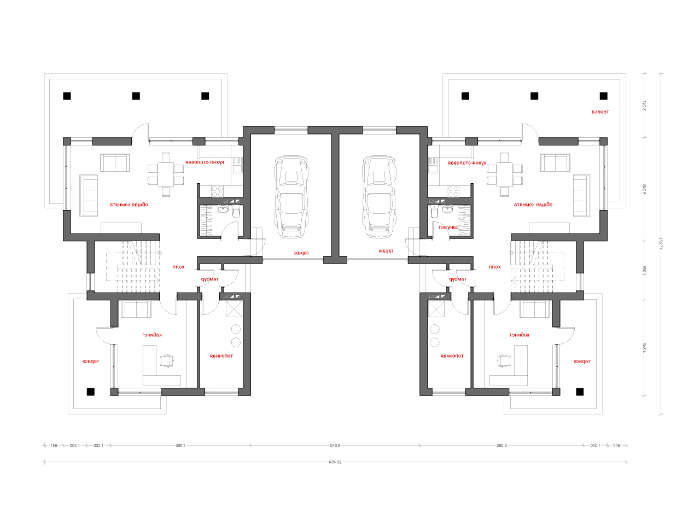 • 4M805 Современный коттедж на две семьи с плоской крышей