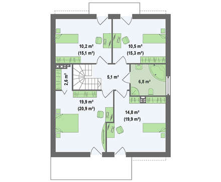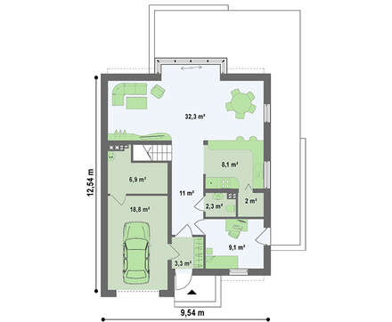 Проект содержит три раздела – Архитектурный, Конструктивный и Инженерный: водоснабжение, отопление, вентиляция, канализация, электроснабжение (приобретается за дополнительную плату) + Пояснительная записка.