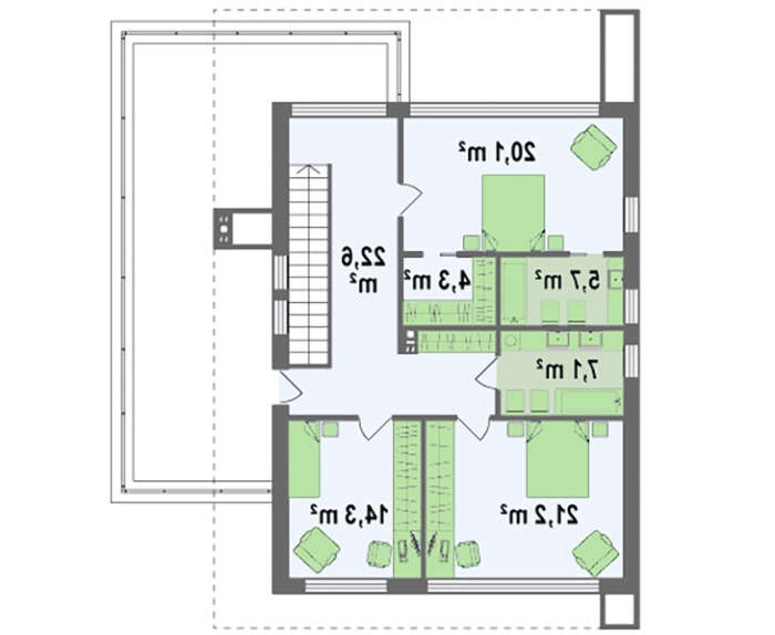 Дом 4M609 – двухэтажное воплощение современности. Модернизм присутствует во всем: в архитектуре, интерьере, элементах декора. Чудные светильники, уличные фонари под крышей, высокие, на всю высоту стены, окна, делают дом каким-то неземным, слегка космическим. Можно только догадываться, какие красивые земные восходы и закаты видны из этих окон.