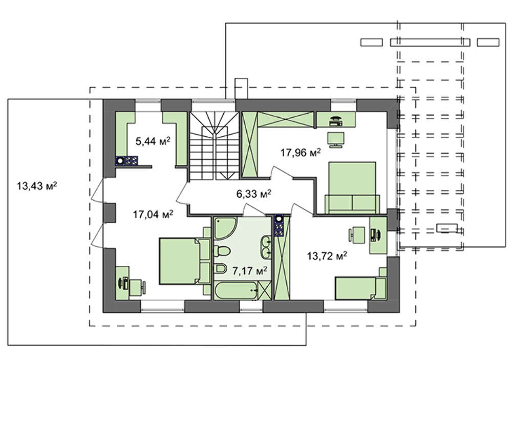 • 4M340 Проект современного хай тек двухэтажного дома простой конструкции