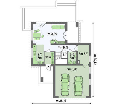 Проект содержит три раздела – Архитектурный, Конструктивный и Инженерный: водоснабжение, отопление, вентиляция, канализация, электроснабжение (приобретается за дополнительную плату) + Пояснительная записка.