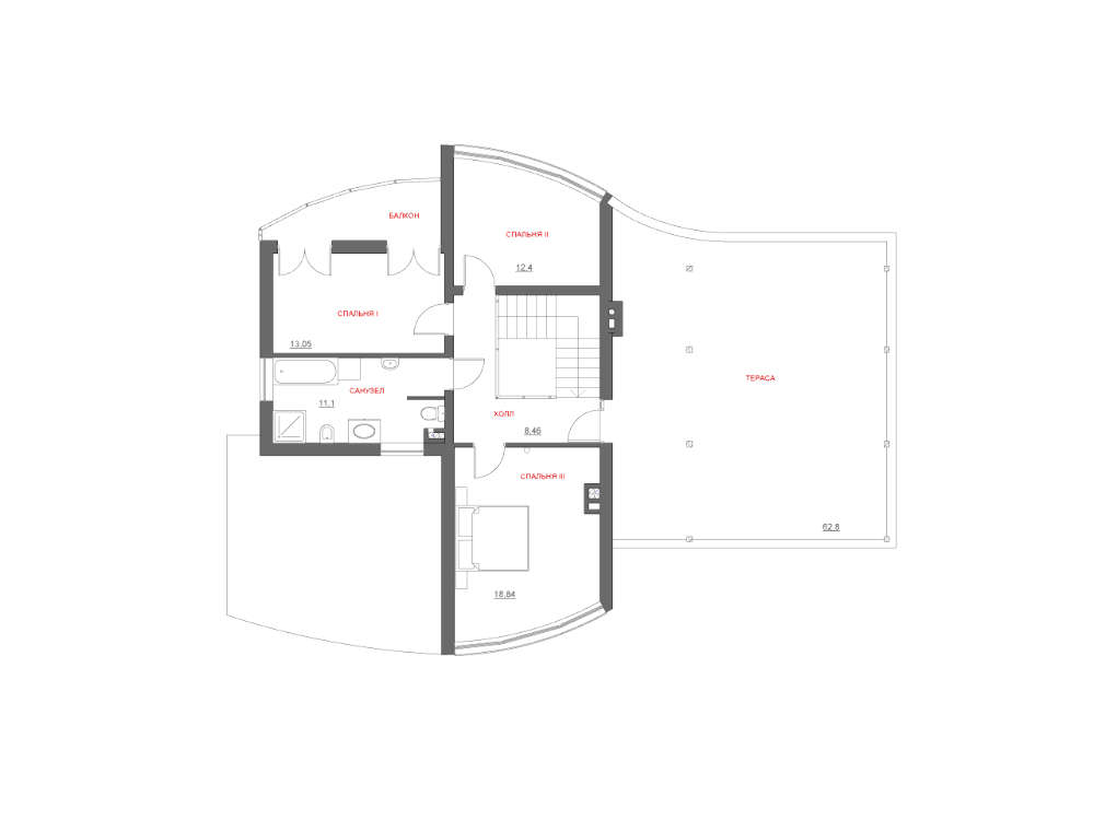 • 4M843 Проект современного коттеджа с 3-мя спальнями на втором этаже и огромной террасой