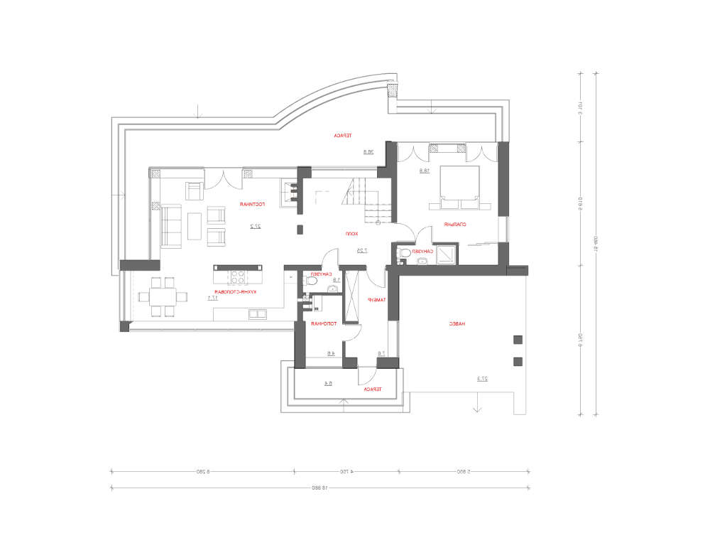 Дом 4m840 всем своим видом говорит о том, что в нем живут абсолютно счастливые люди, умеющие работать и отдыхать, умеющие ценить жизнь и друг друга. Они любят активный отдых и свежий воздух. В летние знойные дни предпочитают охладиться в бассейне, а зимой – слепить снеговика во дворе или поиграть в снежки. Завтрак на террасе – хорошее начало дня, а на балконе хорошо встречать закаты. В осенние дождливые дни они устраиваются в уютной гостиной со стеклянными стенами.