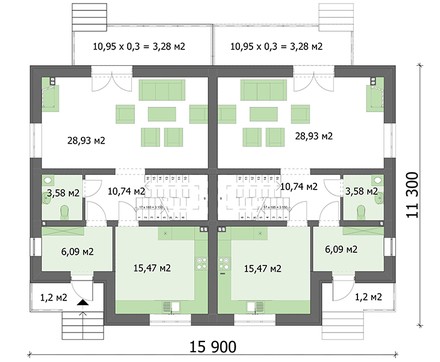 Фемида давно мечтала о собственном доме, и, оправдывая свою женскую слабость к красоте, отправилась в архитектурное бюро выбирать проект самого красивого дома на две семьи.