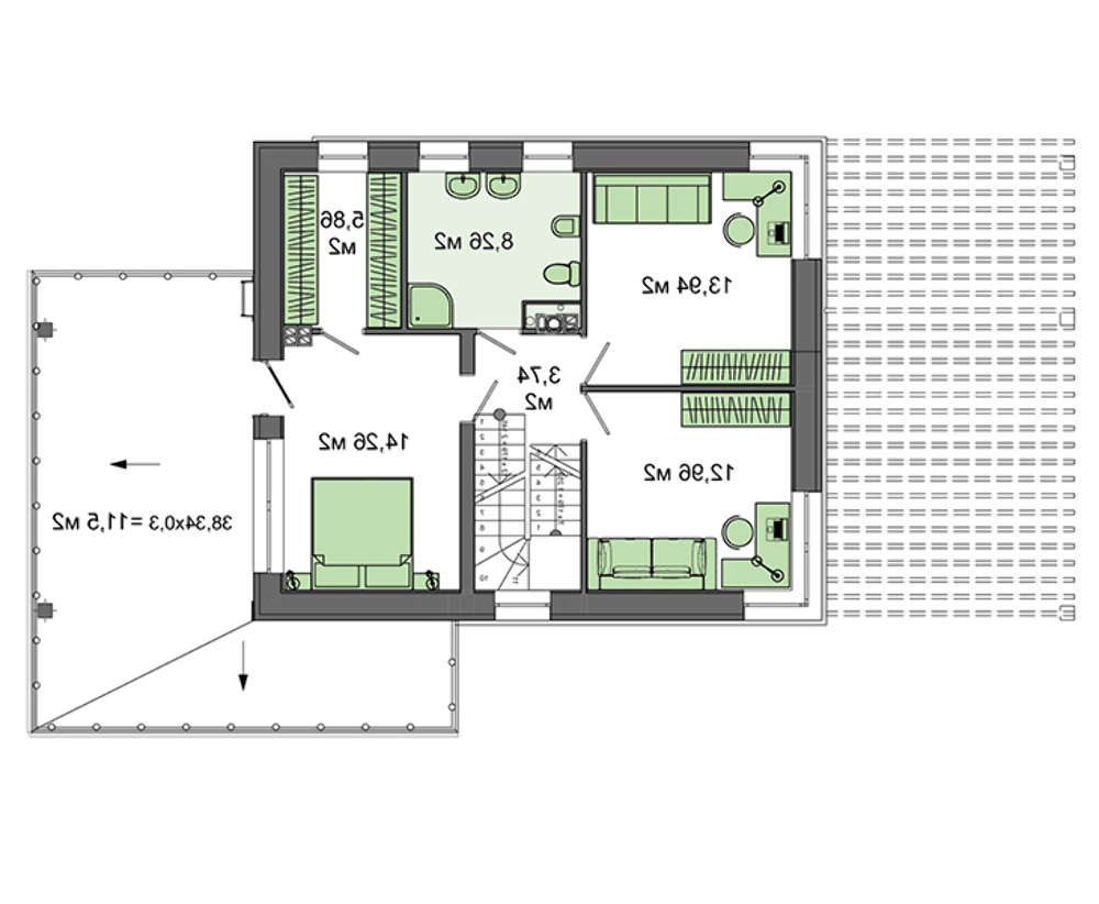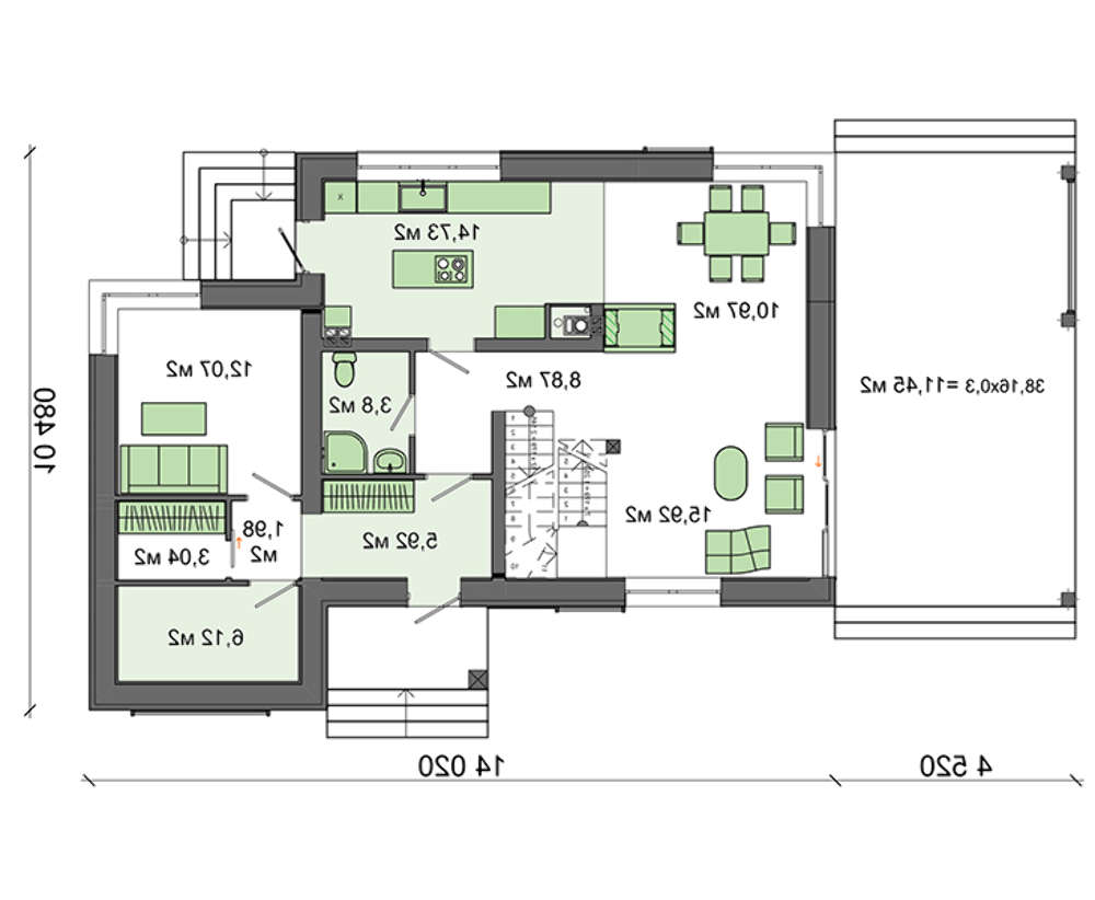 Проект стильного дома в духе минимализма общей площадью 168 кв. м, жилой 69 кв. м 4M561
